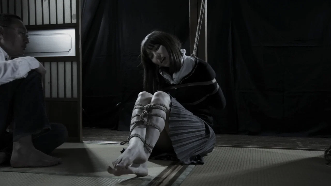 Jyowa is a made-up word created by Yukimura Sensei which merges the characters for “rope” and for “speaking or communicating”, hence it can be translated as “communicating through ropes” or “rope stories”. This project was started in Tokyo in 2011 as a documentary film, yet it ended up becoming more of an aesthetic experience that takes the viewer into the unique universe of five of Japan’s top rope artists (by order of appearance): Naka Akira, Yukimura Haruki, Nawashi Kanna, Urado Hiroshi and Hajime Kinoko. In each of the the five chapters we can see two people taking a journey into a deep and profound level of communication in which rope takes a very special place.