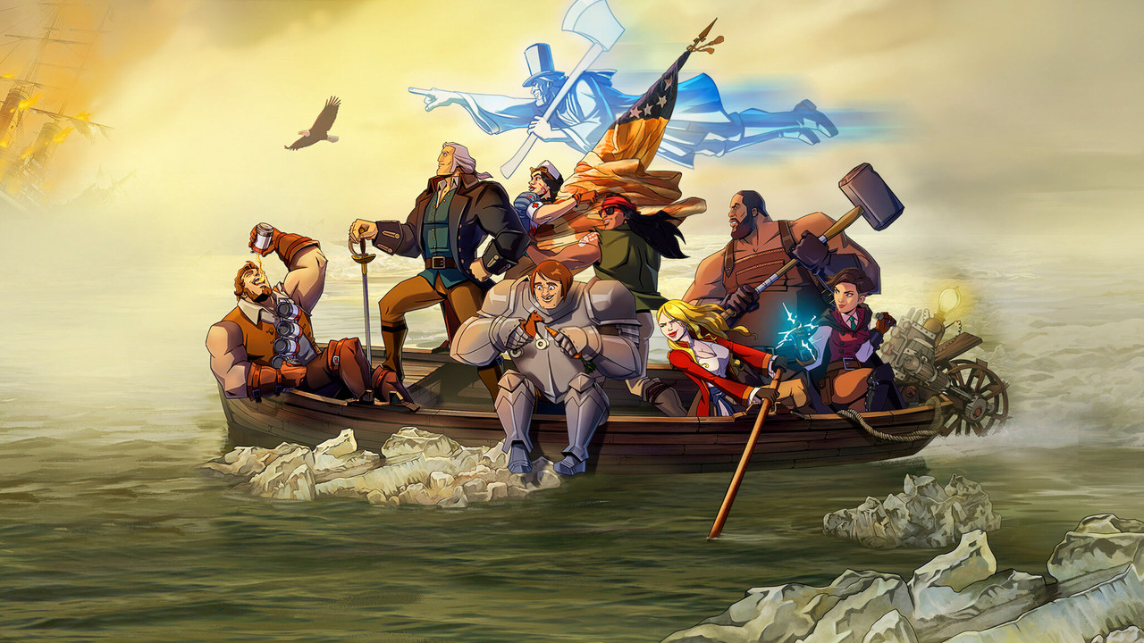 A chainsaw-wielding George Washington teams with beer-loving bro Sam Adams to take down the Brits in a tongue-in-cheek riff on the American Revolution.